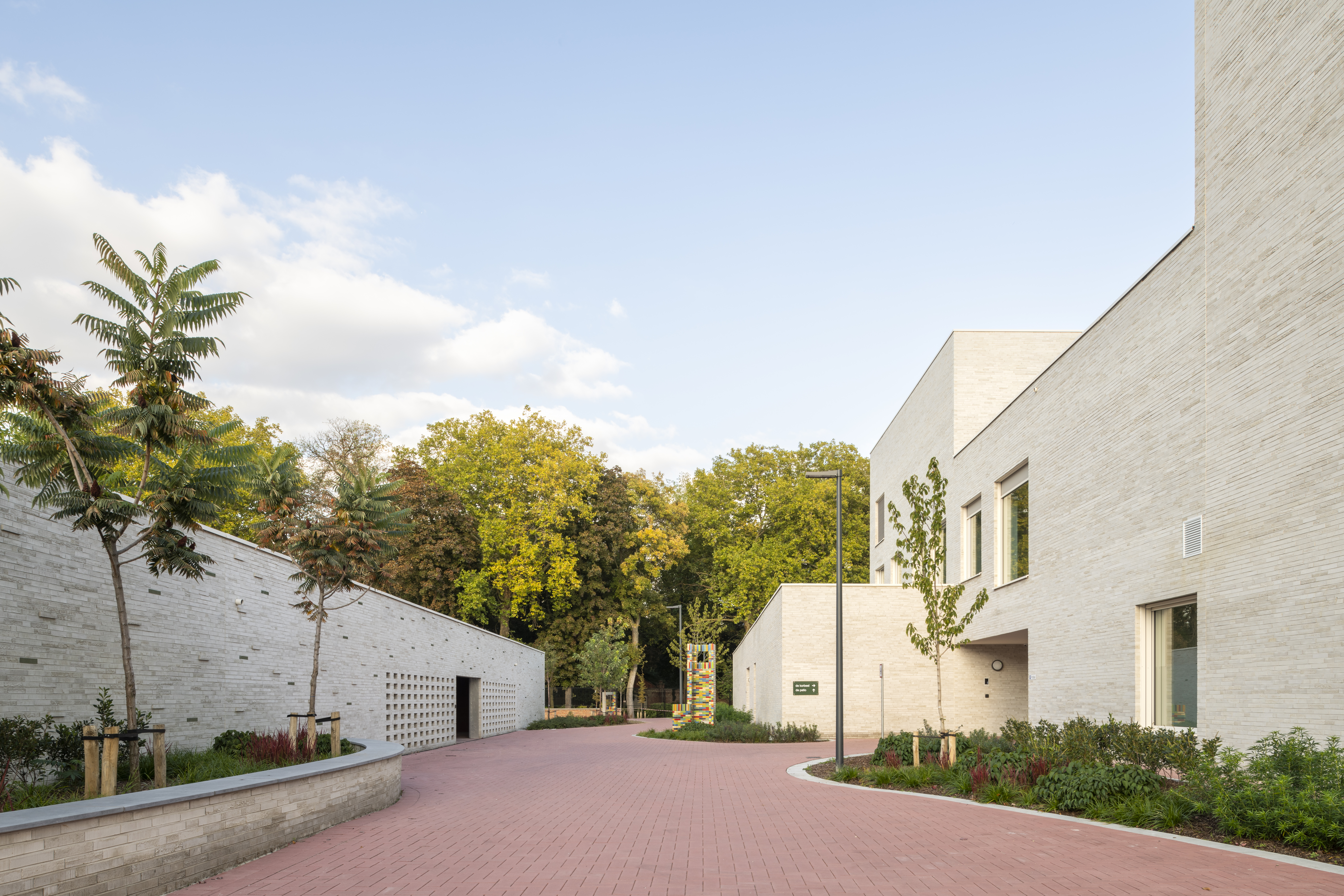On the edge between Kortrijk’s city centre and the historic Groeningepark, Groep Zorg H. Familie has realised a new psychiatric hospital for children and young people. The project aims to break the stigma surrounding mental health care by openly positioning itself in the streetscape and strengthening the connection between the city and the park.