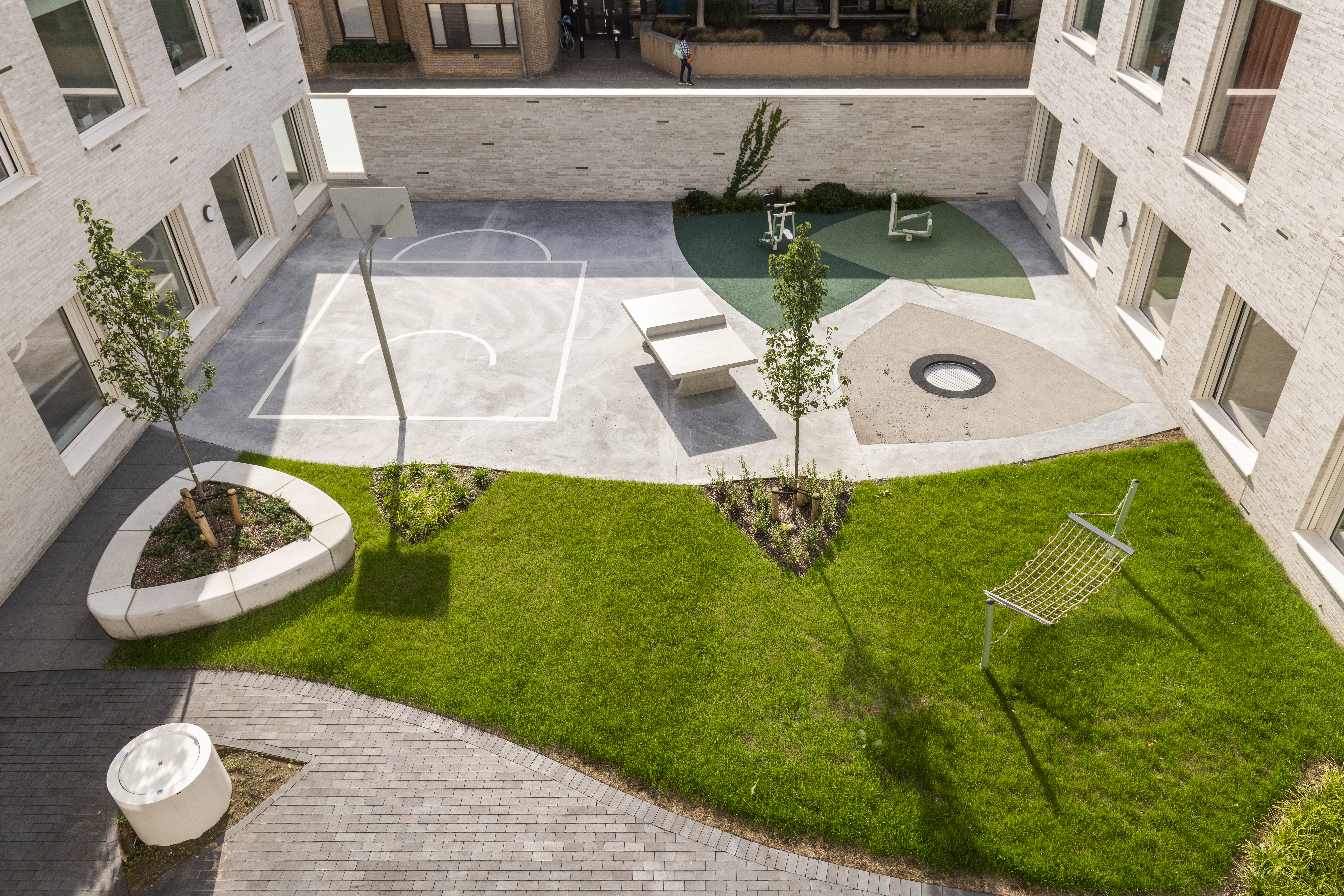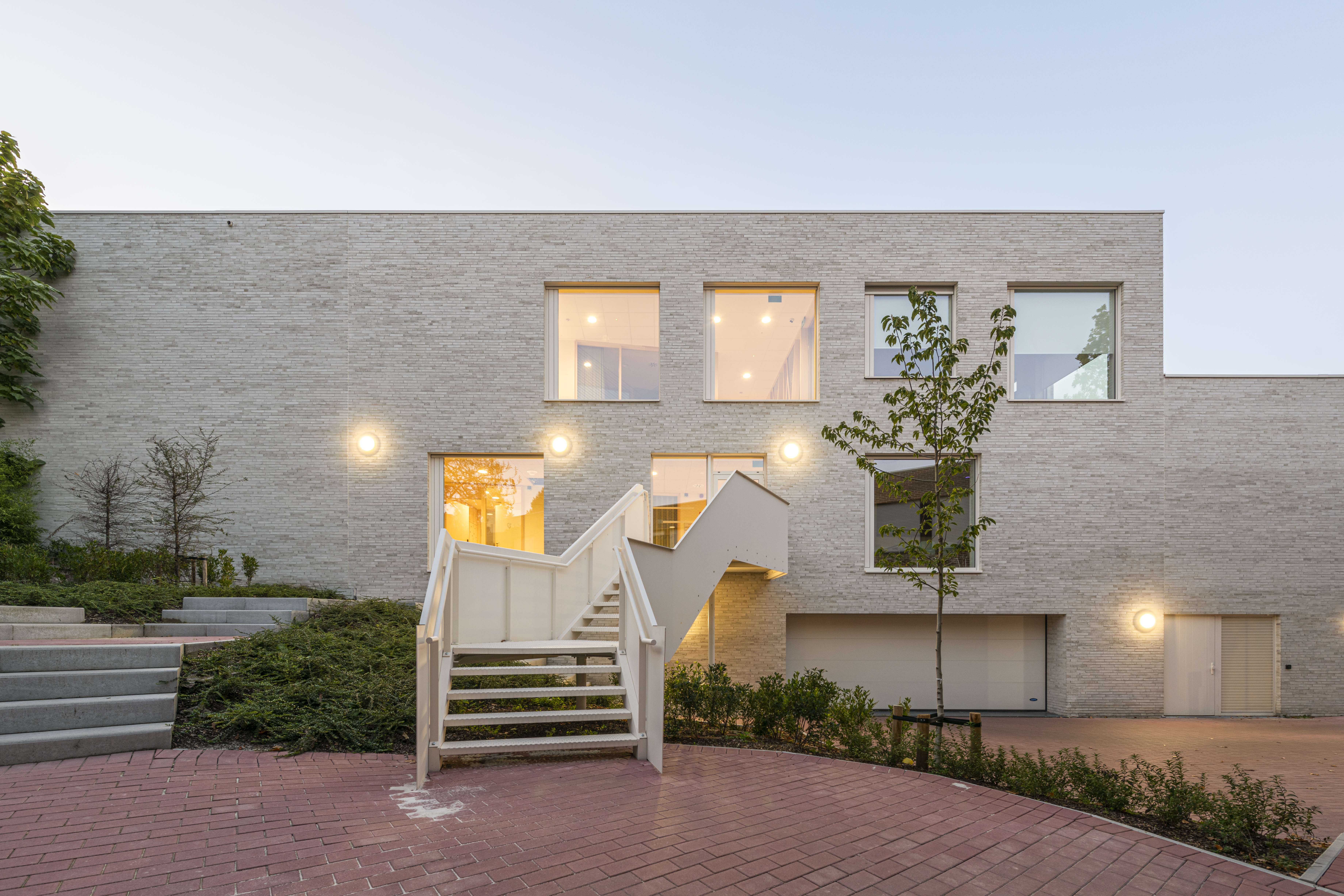 The new campus forms a natural link between the busy Langemeersstraat and the tranquillity of Groeningepark. Through a carefully considered urban and architectural concept, the fragmented streetscape is repaired, with a contemporary interpretation of the terraced house typology. Three patio houses, connected by garden walls, create safe outdoor spaces tailored to the age and needs of the resident groups.