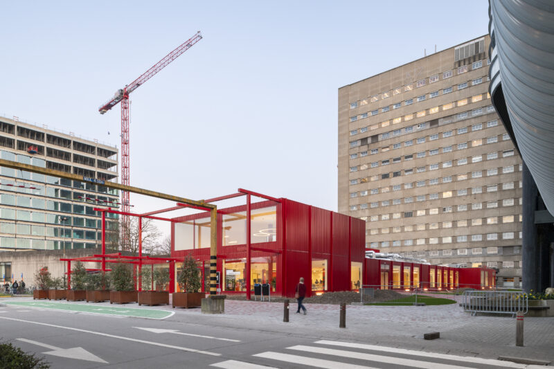 With the entrance pavilion, UZ Gent shows that temporary infrastructure can also be architecturally strong. The building currently plays a crucial role as the central reception point, but is also fully aligned with future plans. Once the new main building is completed, the pavilion can be dismantled or repurposed easily. In this way, this temporary structure contributes not only to current operations, but also to the campus’s flexibility in the future.