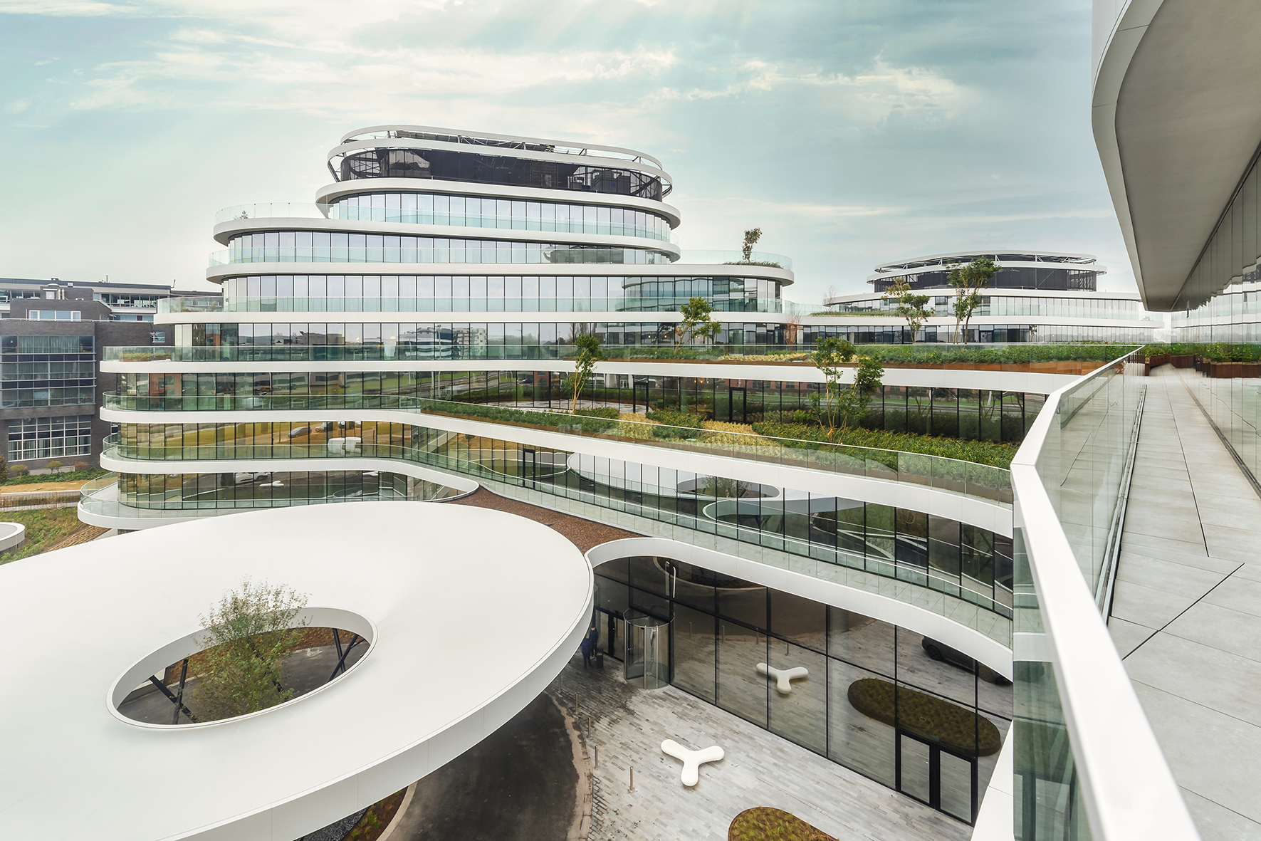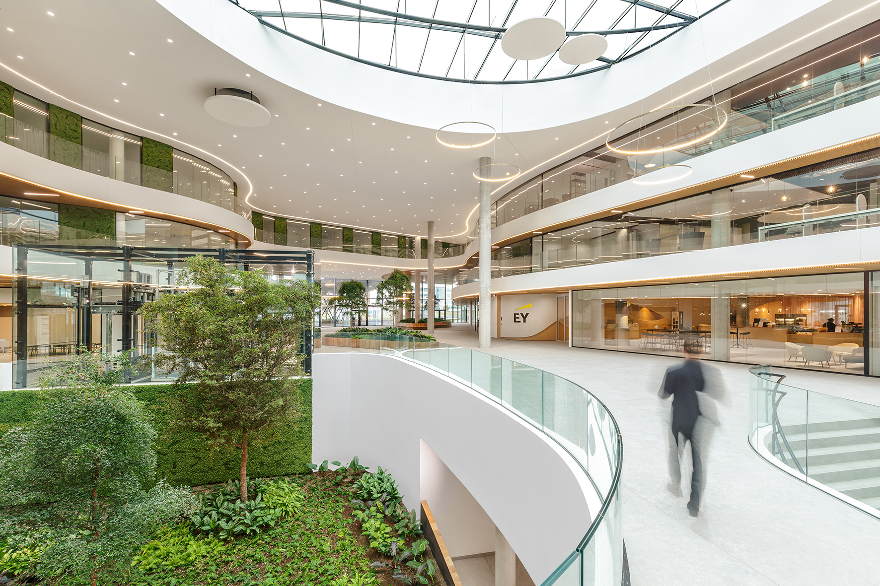 A carbon-neutral ecosystem with offices, hotel, and coworking spaces