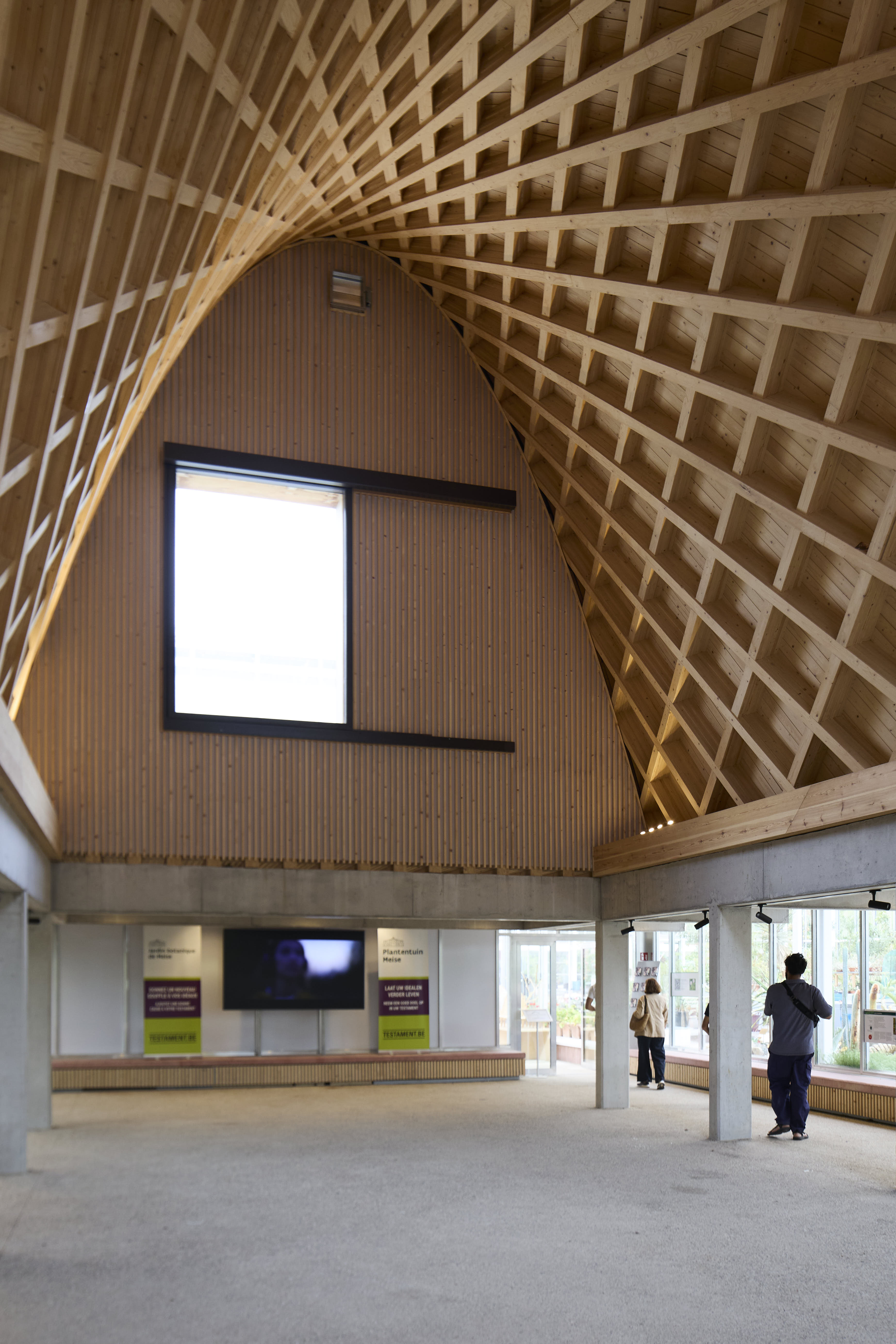 Les visiteurs peuvent marcher sur le toit et admirer une vue spectaculaire sur la serre. Sous le toit se trouve un espace multifonctionnel pour des expositions, ateliers et séminaires sur la biodiversité, avec vue directe sur la banque de semences où le Jardin conserve sa précieuse collection.