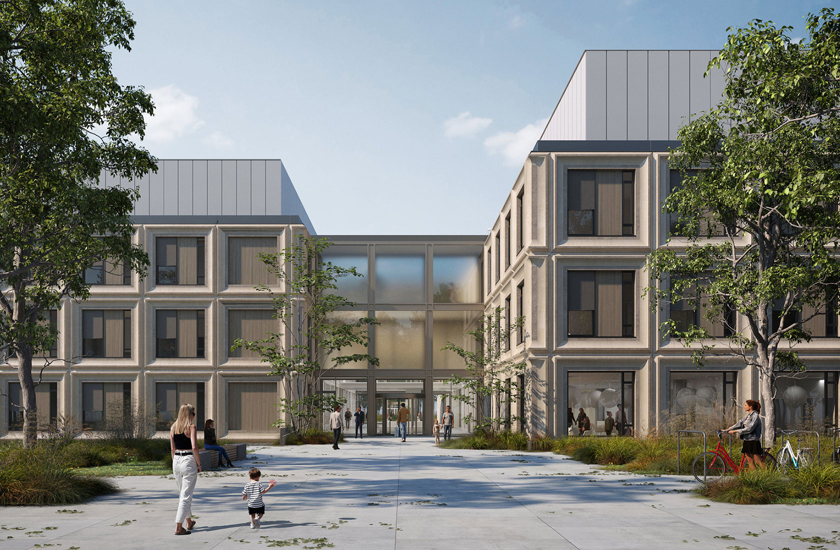 Twee vleugels verbonden door een lichte inkomhal