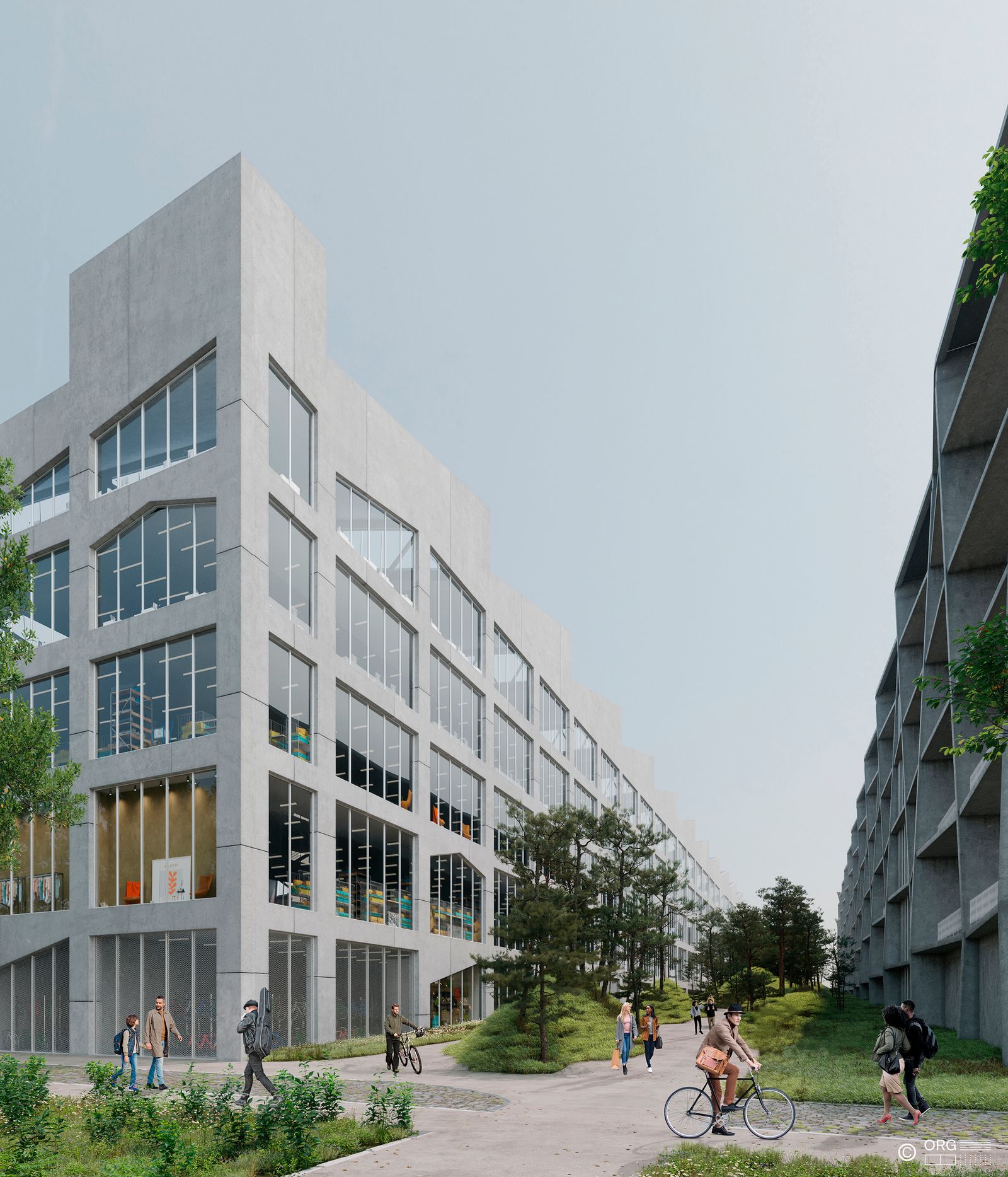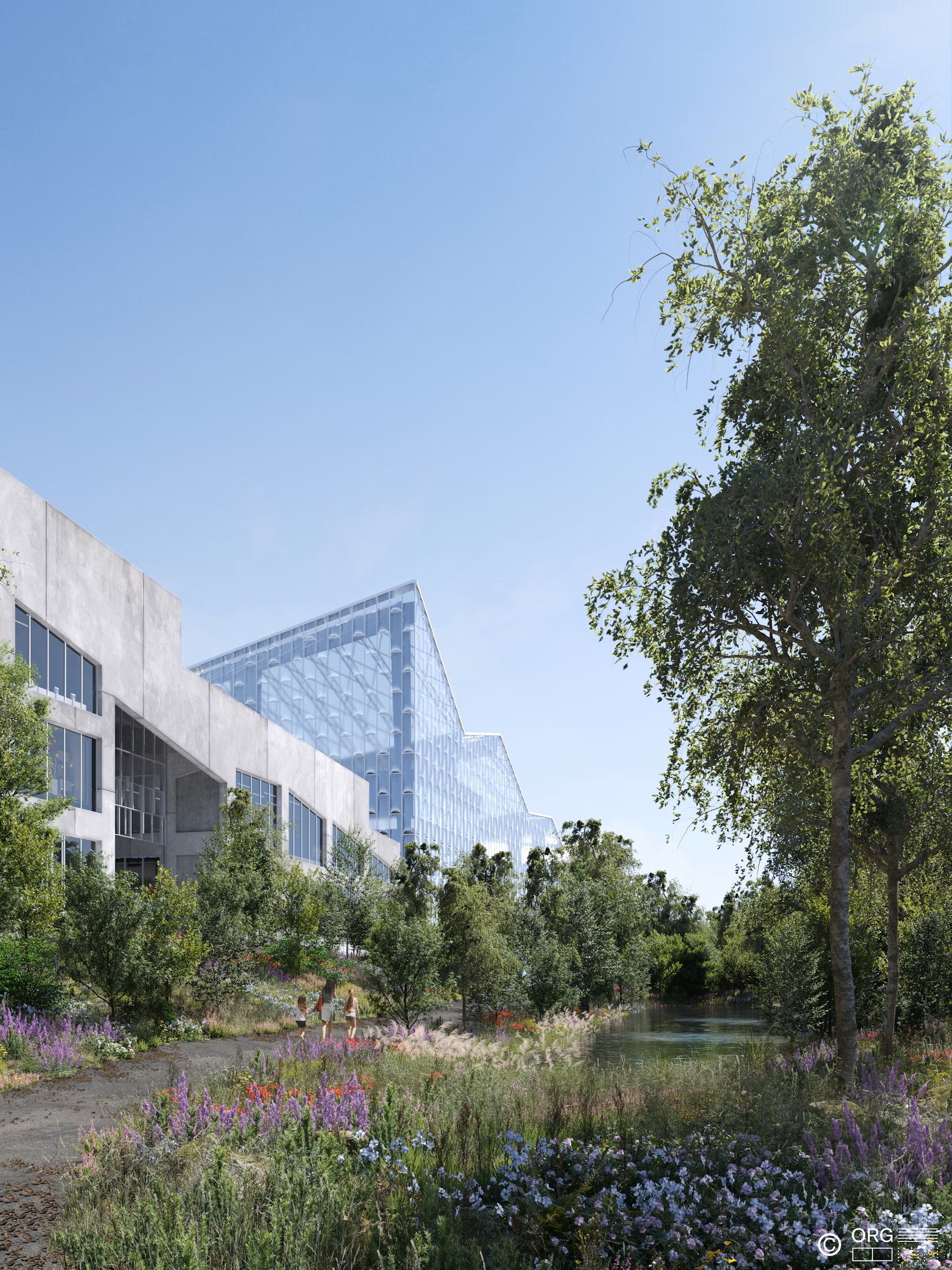 De site is ontworpen door ORG Urbanism & Architecture en Jaspers-Eyers, met Bureau Bas Smets voor het landschapsontwerp. Zes grote, hedendaagse hallen vormen één geheel van in totaal 150.000 m². Ze bieden plaats aan duizenden medewerkers en bezoekers en ondersteunen een brede mix aan functies: van retail met productie of afwerking op locatie, of met een zichtbaar maakproces voor het publiek, tot food & beverage, leisure, cultuur en kantoren. Het ontwerp brengt het landschap tot in de gebouwen: architectuur en omgeving vloeien in elkaar over, waardoor bijna de helft van de totale oppervlakte een groen karakter krijgt.